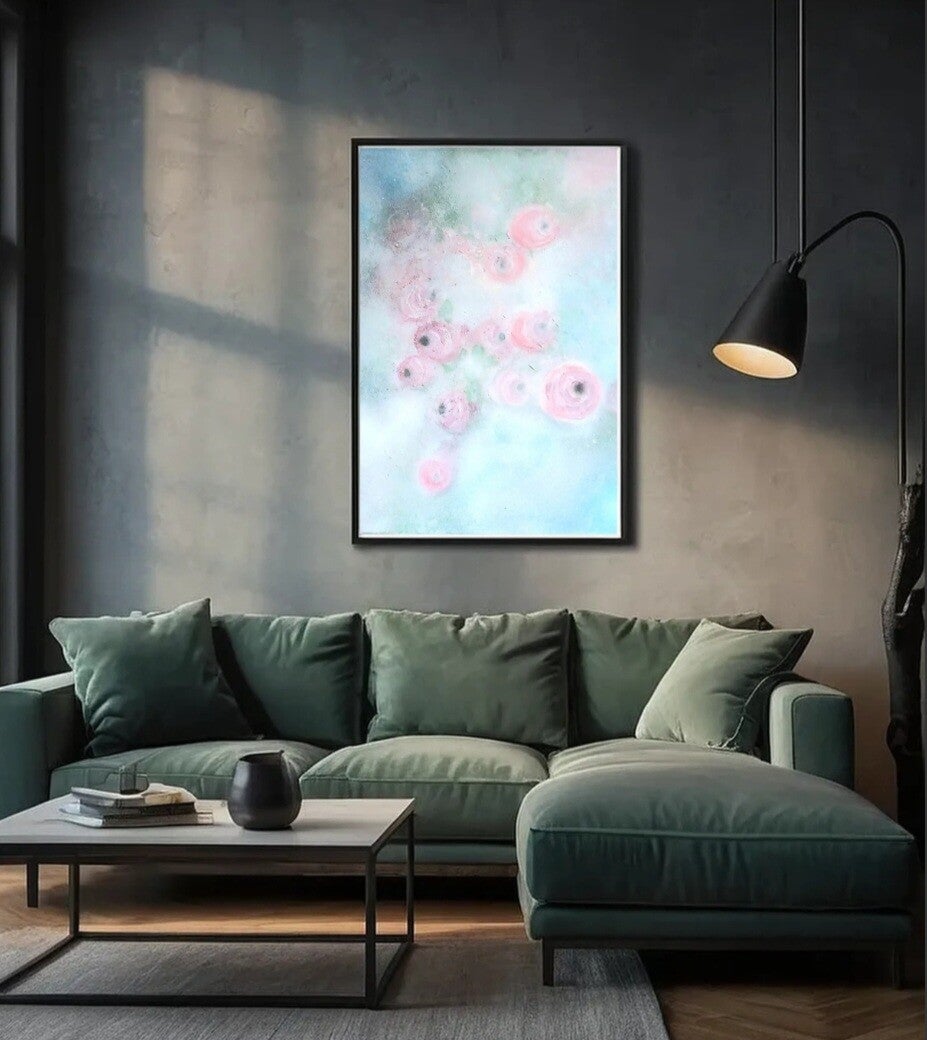 Ripustusvalmis teos kankaalla, ei kehyksiä